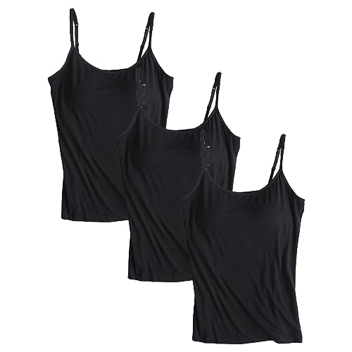 Jamron Dam 3 delar basic linne justerbar rem väst linne med inbyggd hylla BH stretch undertröjor (S-4XL), Svart + svart + svart, L