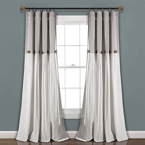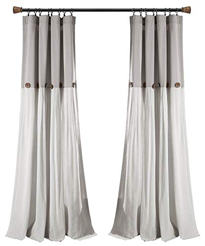 Lush Decor Fönstergardin i linne, med knappar, enkelpanel, 102 B x 241 cm L, grå och vit, lantliga gardiner, rustik dekor, färgblock, moderna bondgårdsgardiner för vardagsrum, sovrum och matsal