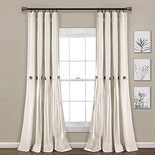 Lush Decor Fönstergardin i linne, med knappar, enkelpanel, 102 B x 274 cm L, benvit, lantliga gardiner, rustik dekor, färgblock, moderna bondgårdsgardiner för vardagsrum, sovrum och matsal