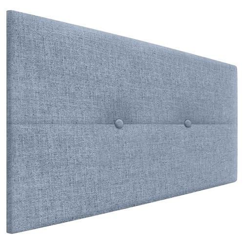DHOME Naturligt linne Huvudgavel med Knappar Stoppad Huvudgavel Säng Sovrum Modern Topptrend (Linne Blå, 90x50cm (80/90))