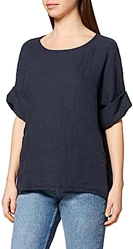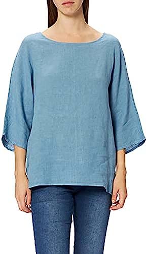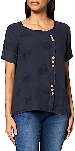 Bonateks Dam tunika 100% linne tillverkad i Italien, rund hals topp med knappar och halvärmar, marinblå, storlek: S, Marin, S
