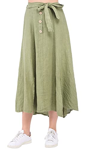 Bonateks Dam kjol 100% linne tillverkad i Italien, lång kjol med knappar med bälte, khaki Claire, Khaki Claire, XL