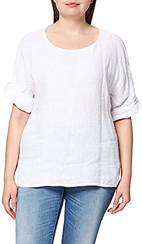 Bonateks Dam 100% linne tunika tillverkad i Italien, rund hals topp med knappar och halvärmar, vit, storlek: L, Vitt och blått, L