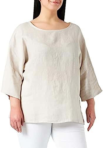 Bonateks, Topp av rent linne med knappar på framsidan, 100% linne, De-storlek: 42, US storlek: XL, toppar, ljusbeige – tillverkad i Italien, Beige, 42