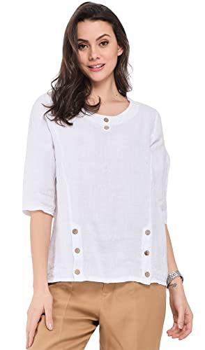 Bonateks, Topp av rent linne med knappar på framsidan, 100% linne, De-storlek: 40, Us-storlek: L, toppar, vit – tillverkad, Vit, 40