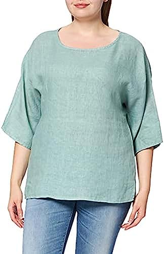 Bonateks Dam 100% linne tunika tillverkad i Italien, rund hals topp med knappar och halvärmar, rosa, storlek: XL, rosa, XL
