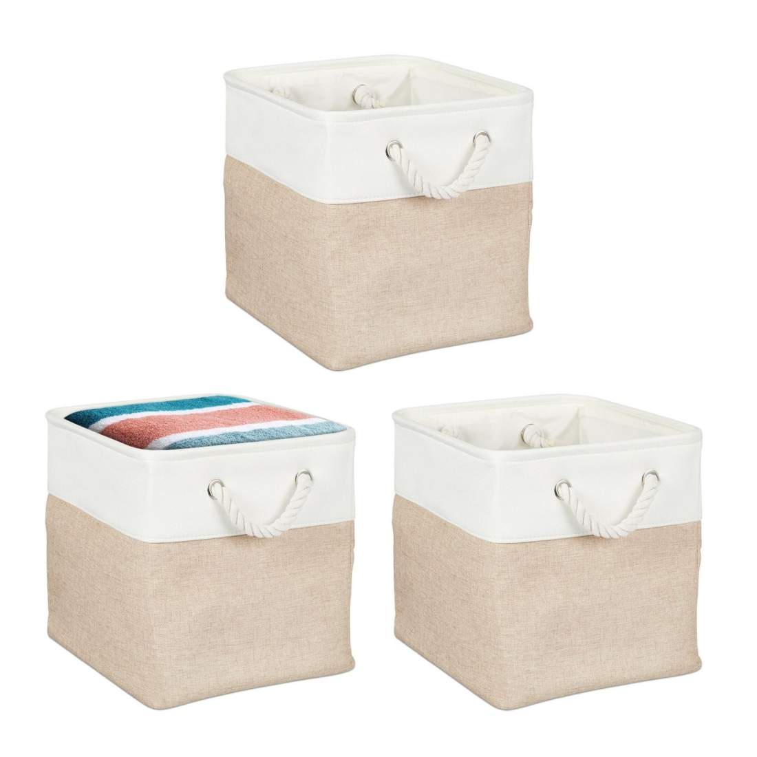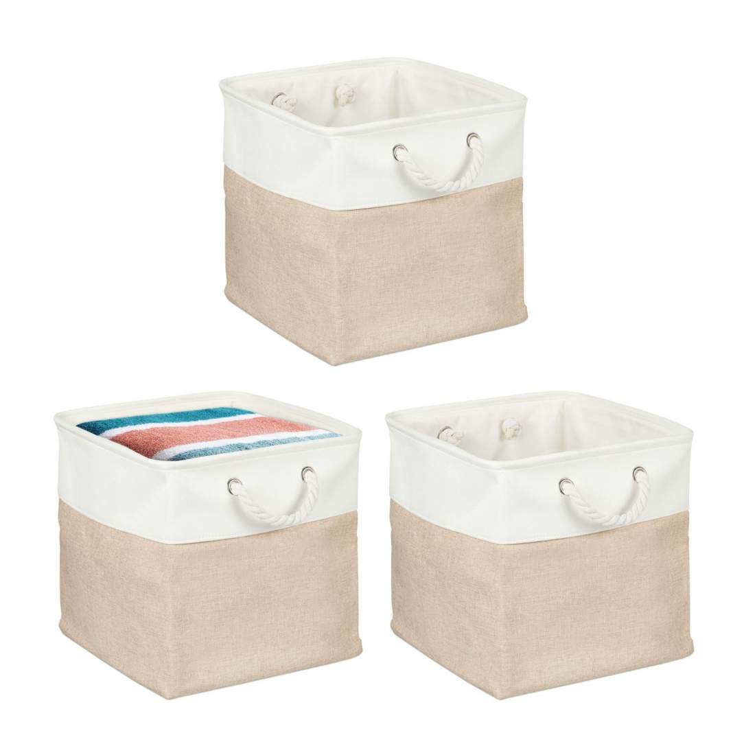 Förvaringskorgar i linne, set om 3 – tvåfärgad design