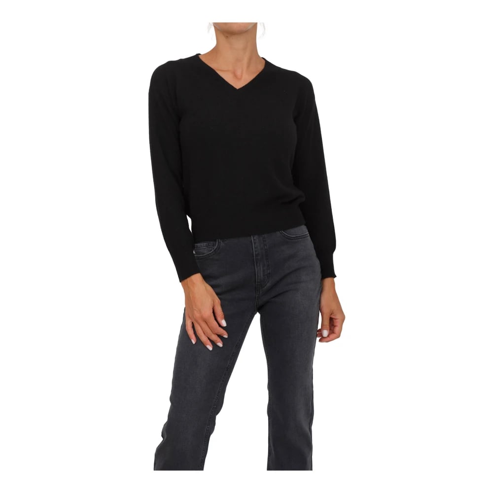 Marella, Stickade Tröjor , Dam, L, Linne, Svart Linne Ull Viskos Polyamid