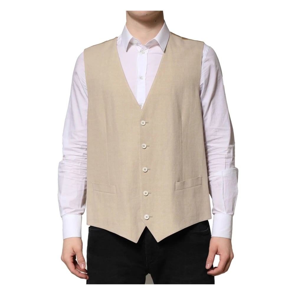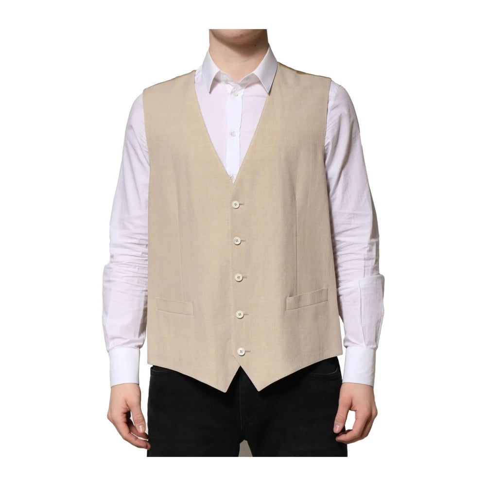 Dolce & Gabbana, Kostymer , Herr, L, Linne, Beige Linne Formell Väst