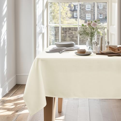 Homaxy Bordsduk med linneutseende, tvättbar, lotuseffekt, kantig, 140 x 240 cm, linneduk, vattenavvisande, fläckskydd, beige