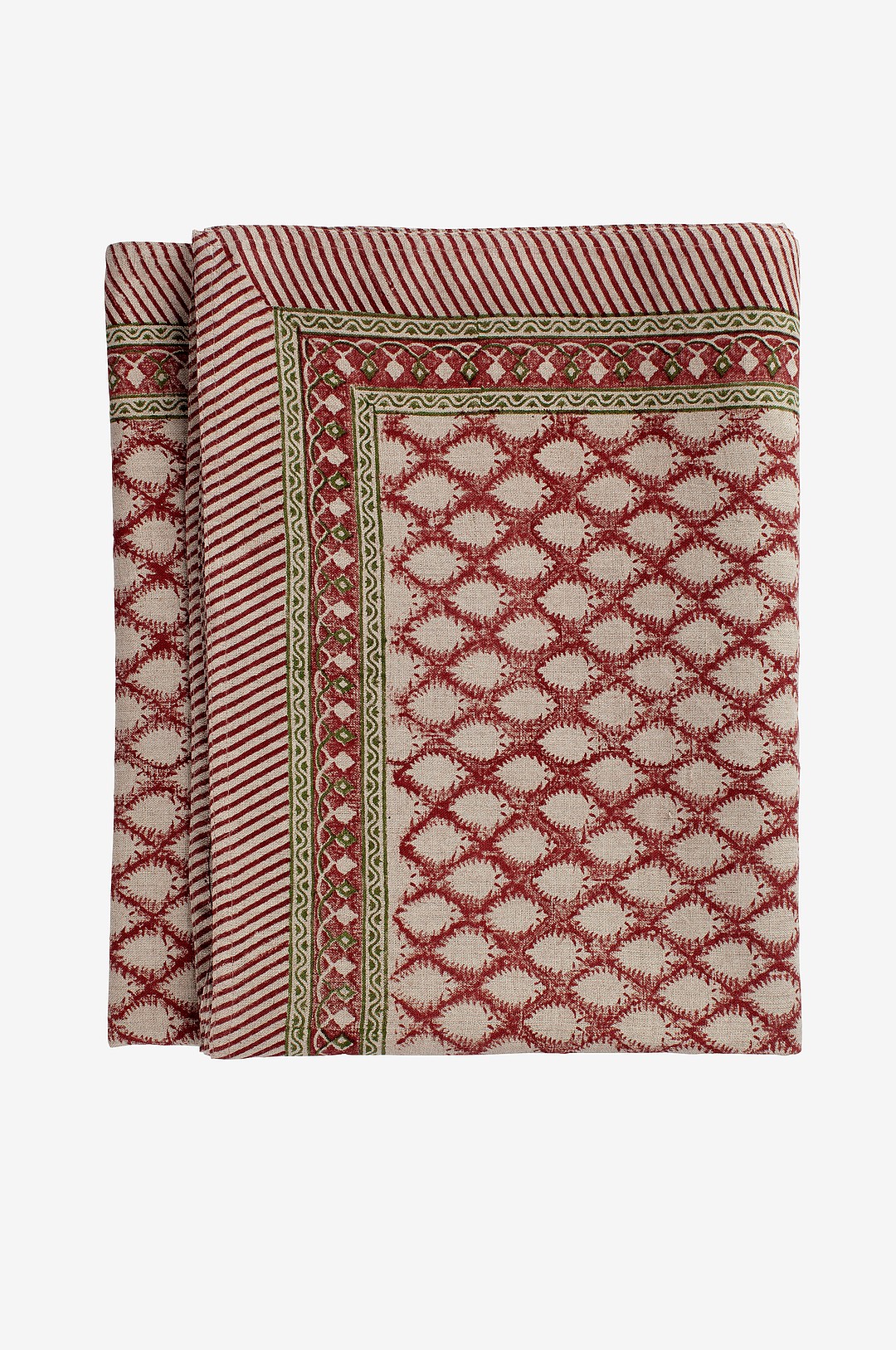 Chamois - Persian Paisley linneduk 170x270 cm röd/grön/vit