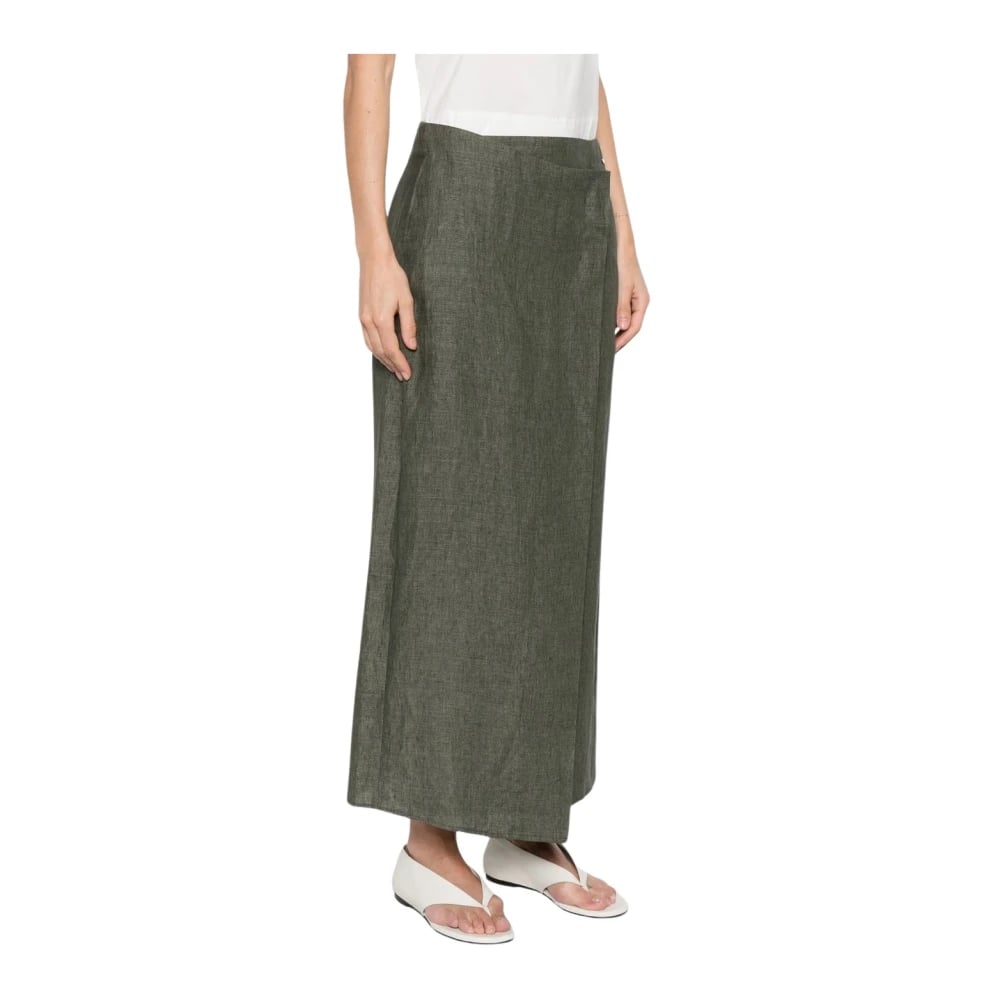 CAROLL Medellång linnekjol, Färg: grön, 32