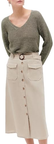 CAROLL Medellång linnekjol, Färg: grön, 34