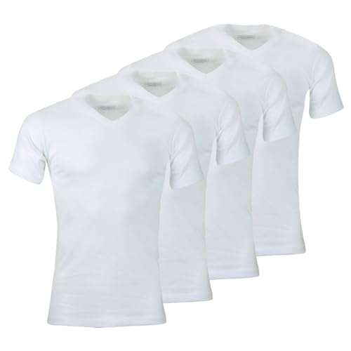 Athena Set med 4 ekopack v-ringad linnen för män - 100% bomull - Oeko-TEX Standard 100 etikett - sömlösa sidobody-tröjor, kortärmad, Vit/vit, XL