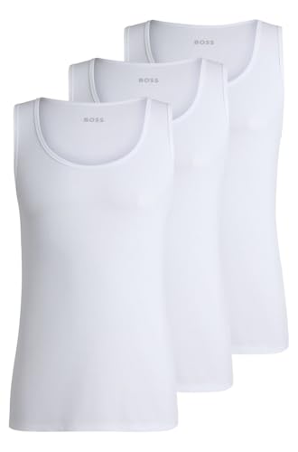 BOSS TankTop3P RibClassic Set med tre linnen i ribbad bomull för män, Vit100, XL