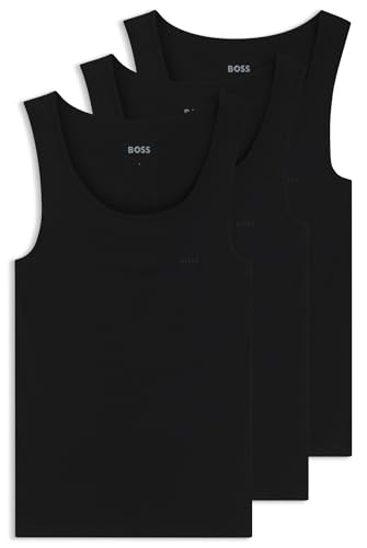 BOSS TankTop3P RibClassic Set med tre linnen i ribbad bomull för män, svart, S