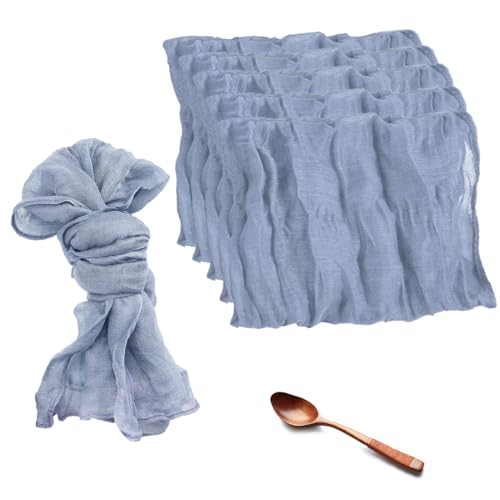 Linneservetter 6 stycken tygservetter 45 x 55 cm tvättbara bomullsservetter återanvändbara tygservetter middag mångsidig handgjorda servetter för bröllop och fester (ljusblå)