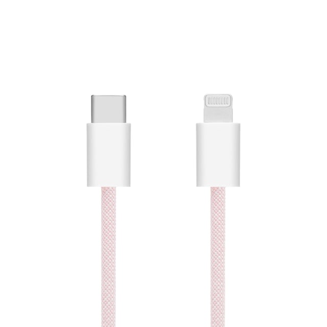 Linocell Flätad USB-C- till Lightning-kabel - Rosa 1 m