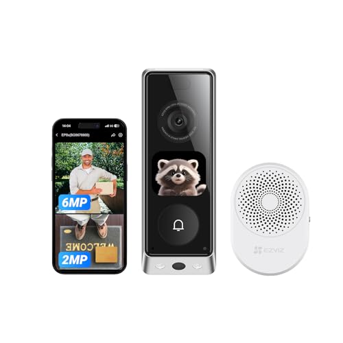 EZVIZ EP8 Ultra Videodörrklocka med 6MP+2MP Dubbla Linser, Interaktiv Skärm, 2 * 9600mAh Löstagbara Batterier, Videosamtal, Person-/paketdetektering, Färgnattseende, Inbyggt 32GB eMMc, Dörrklocka