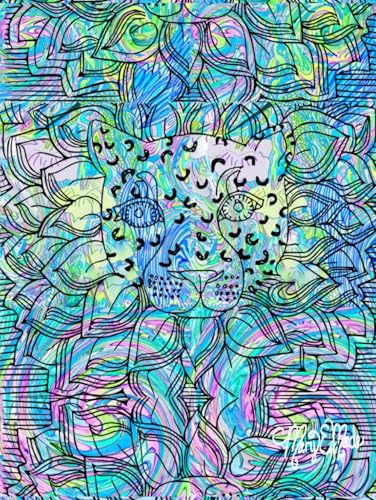 Abstract Cheetah, Leaf Lion, Star-Detailed, 8x11 Page, Hardcover Journal, Art Pad, Sketchbook, Drawing Book: Created With Hand-Drawn Art By: Artist Mary Elisabeth Linder @ MaryEMade