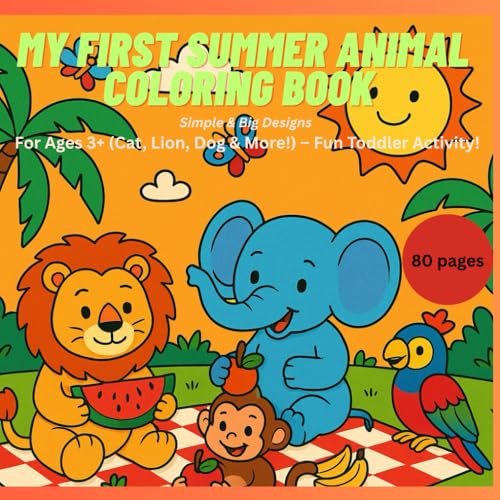 My First Summer Animal Colouring Book: Simple & Big Designs for Ages 3+ (Cat, Lion, Dog & More!) – Fun Toddler Activity!