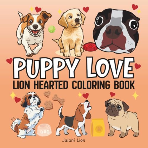 Puppy Love: Lion Hearted Coloring Book for Adults and Kids, Over 50 Pages of Bold and Easy Designs for Relaxation Featuring Dog Lovers, Animals, Cute Things and Many More