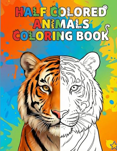 HALF COLORED ANIMALS COLORING BOOK: Size 8.5*11 | Pages 104 | Complete the Other Half Color Animals of Lion,Tiger,Giraffe,Owl,Ape,Cat,Dog and More | Color Test Page Included | Adults and Kids