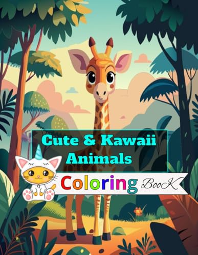 Kawaii Animal Friends Coloring Book for Kids -cute and easy coloring fun with Lion,Tigers,Dog,Cat,Elephants & More!