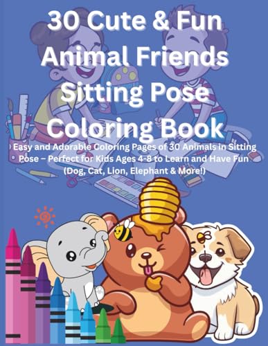 30 Cute & Fun Animal Friends Sitting Pose Coloring Book: Easy and Adorable Coloring Pages of 30 Animals in Sitting Pose – Perfect for Kids Ages 4-8 to ... Have Fun (Dog, Cat, Lion, Elephant & More!)