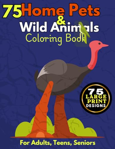 75 Home Pet & Wild Animals Coloring Book: Large Print Cat, Dog, Lion, Piranha, Designs for Adults, Teens, Seniors, and Stress Relief