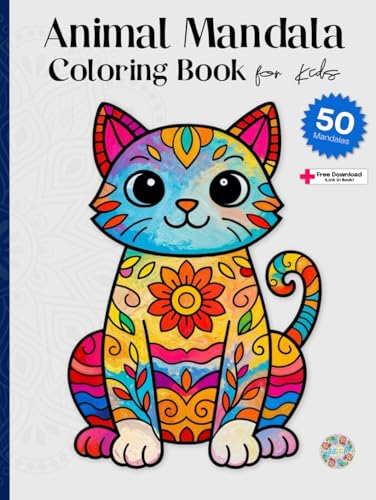 Animal Mandala Coloring Book for Kids Ages 6+ - 50 beautiful Animal Mandala Coloring Pages for Children: Dog, Cat, Lion, Penguin & many more - ... Creative Coloring Book for Boys & Girls