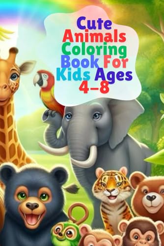 Cute Animals Coloring Book For Kids Ages 4-8: Fun And Easy Coloring Pages in Cute Style With Lion, Tiger, Giraffe, Panda, Dog, Cow And More For Boys Girls