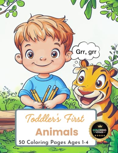 My First Animal Coloring Book for Toddlers Ages 1-4| 50 Simple Pictures of Cute Animals with Sounds :Cow, Duck, Dog, Cat, Elephant, Lion: Easy ... Like "Moo" and "Baa", Perfect for Beginner