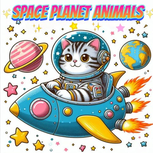 Space Planet animals: Coloring Book for kids, 40 Big pages bold and easy for Children, Cute and funny animal, cat, dog, lion.., simple design