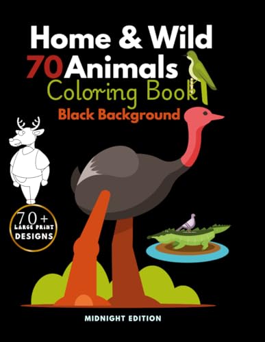 70 Home & Wild Animals Coloring Book: A Black Background Midnight Edition for Adults, Teens, Seniors, and Neon Gel Pens | dog, cat, lion, pirahna