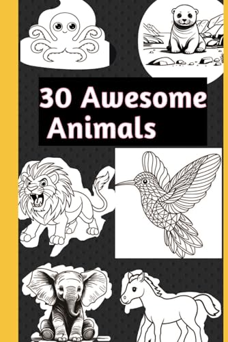 30 Awesome cute animals coloring book, variety animals(Quill, cute dog,cute elephant, Rabbit,cute cat,horse,parrot,crocodile,lion,mosquito,etc....)