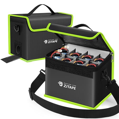 ZJTAPE Lipo Safe Bag Brandsäker, Explosionssäker Batteriväska, Stort förvaringsutrymme Lipo Storage Box - Brandsäker Säker, Skydds Säker Väska, Justerbar Batteriväska (Svart, Grön)
