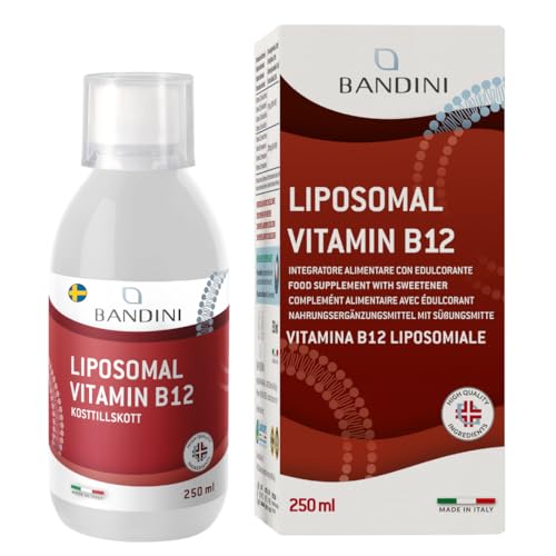 Bandini® Vitamin B12 Liposomal 1000 mcg - 250 ml flytande liposomalt tillskott - högdoserad och absorberad vitamin B 12-100% vegansk - GMO-fri - sojafri - med dispenserkork