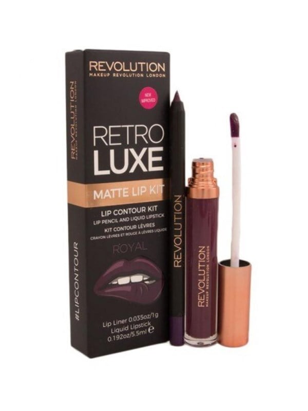 Makeup Revolution Set : Retro Luxe Matte Liquid Lipstick, Royal, 5.5 ml + Retro Luxe, Lip Liner, Royal, 1 g
