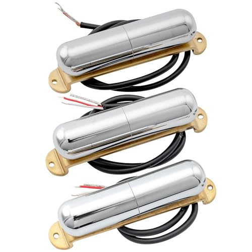 Artec Alnico 5 Lipstick Single Coil Pickup Set Hals Mitt Stall för Strat Style Elgitarr, Krom