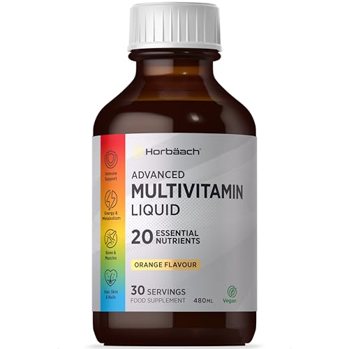 Multivitamin Liquid | 480ml | Veganskt Kosttillskott med 20 Essentiella Näringsämnen | Vitamin A, D, C, B6, B12, Folsyra och Mer | Multivitamin Kvinna och Man | av Horbaach