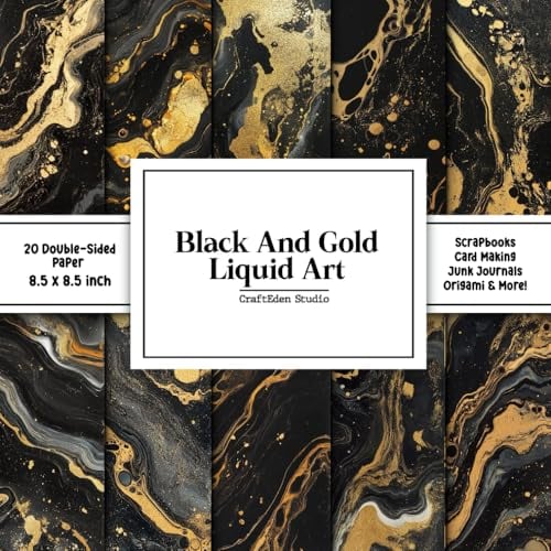 Black And Gold Liquid Art Scrapbook Paper: Decorative Double-Sided Craft Papers For Junk Journals, Wrapping & Mixed Media, Card Making And More