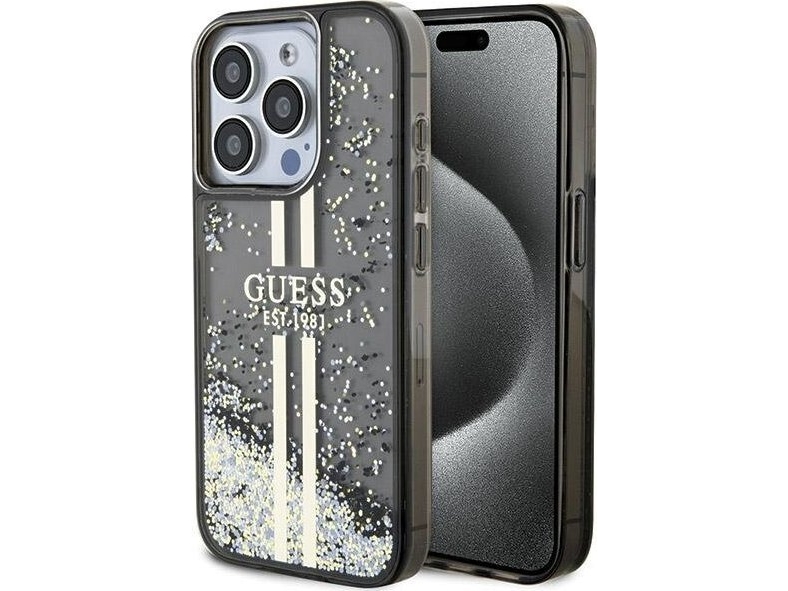 Guess Guhcp15llfcsegk Iphone 15 Pro 6.1" Czarny/Black Hardcase Liquid Glitter Gold Stripes