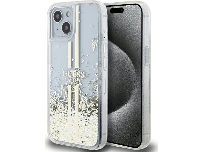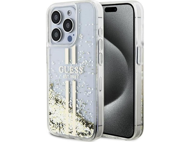 Guess Guhcp15llfcsegt Iphone 15 Pro 6.1" Transparent Hardcase Liquid Glitter Gold Stripes