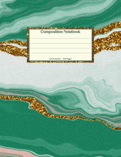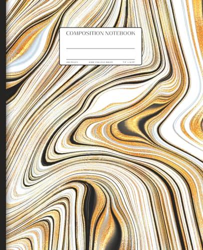 College Ruled Composition Notebook, 7.5″ x 9.25″, Gold Liquid Marble Agate Stone Cover, 160 Pages: Elegant Marble-Pattern Writing Journal for School, Work, or Home