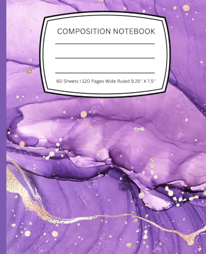 Purple and Gold Liquid Marble Watercolor Composition Notebook: Aesthetic Wide Ruled Paper Lined Notebook Journal For Students, Professionals, School, ... Ideas | 9.25 x 7.5 Inches | 120 Pages