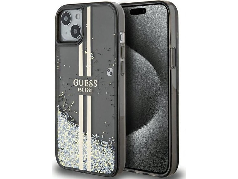 Guess Guhcp15mlfcsegk Iphone 15 Plus / 14 Plus 6.7" Czarny/Black Hardcase Liquid Glitter Gold Stripes