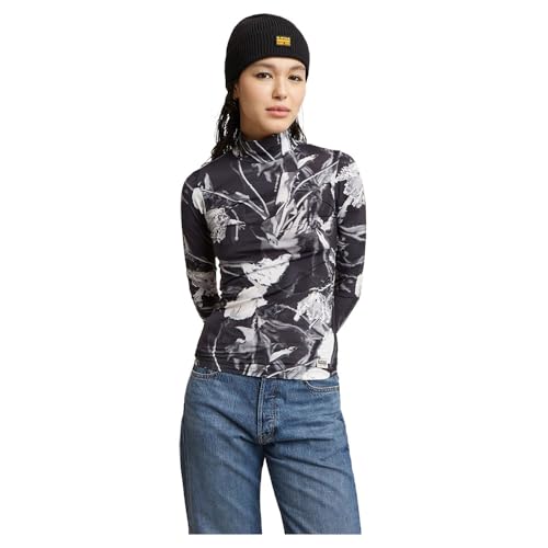 G-Star RAW Tryckt mock slim långärmad, Flerfärgad (Dk Black Liquid Layers D25055-d796-h014), S