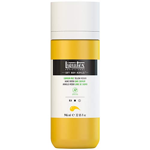 Liquitex 1946890 professionell akrylfärg Soft Body – konstnärsfärg i krämig täckande konsistens, hög pigmentering, ljusäkta och åldringsbeständig, 946 ml flaska – kadmiumfri gul medium