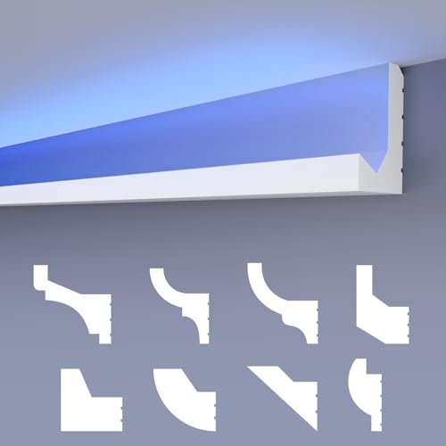 HEXIMO LED-stuckaturlister, klassisk, XPS, polystyren, indirekt belysning, vägg och tak, lister, stuckaturlister, dekorativa ljus, taklister (10,2 meter HLED 4)